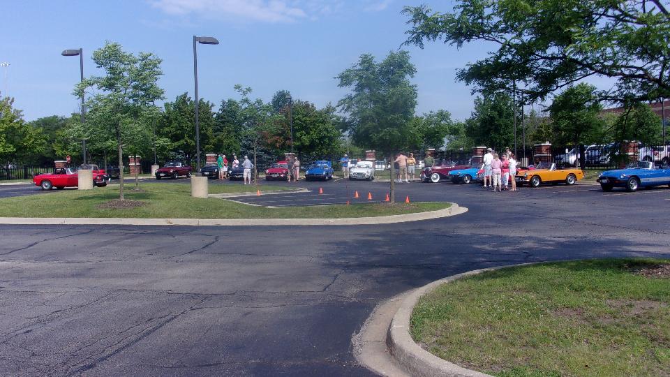 Lined up for Lands End Rally today with CMGC in Darian, Illinois. Must have counted 14 cars, likely all MGs (because that's what you need to get your participation points). In years past the Lands End rally used to run 240 miles by tradition, commonly in southern Wisconsin, usually with no stop lights for the whole trip, and were significantly competitive gimmick rallies. Well, they ain't what they used to be. This one must have been less than 50 miles, mostly a casual tour with a couple of easy driving gimmicks, and dinner at a restaurant at the end. I recon this club has largely evolved into an eating club with a car disorder. Rest of the day off to fiddle on WiFi.