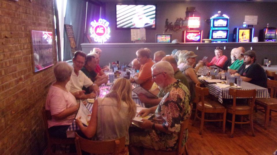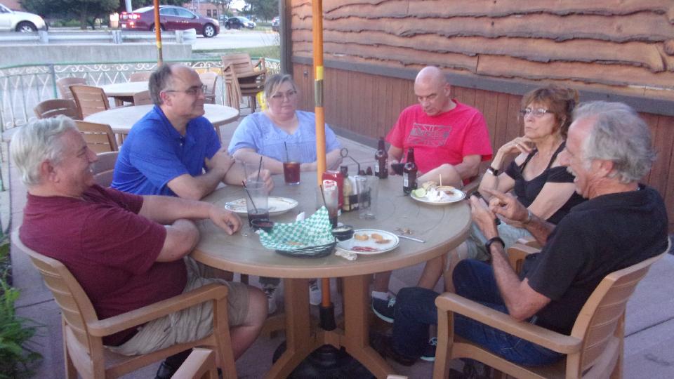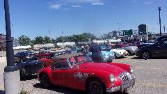 Catching up email and BBS, posting a new tech page for MGA Twin Cam dipstick dimensions. Sailing east across Illinois, we stopped at my storage locker in Romeoville in late afternoon to pick up some books I wanted to donate to the club lending library. Then up to Elmhurst to drop off navigator Elliot, followed by a run to Elk grove Village to pick up younger daughter Honey and return to Elmhurst for the monthly meeting of Chicagoland MG Club. Three of us for dinner please, and another 35 or so club members present, and drop off the books.