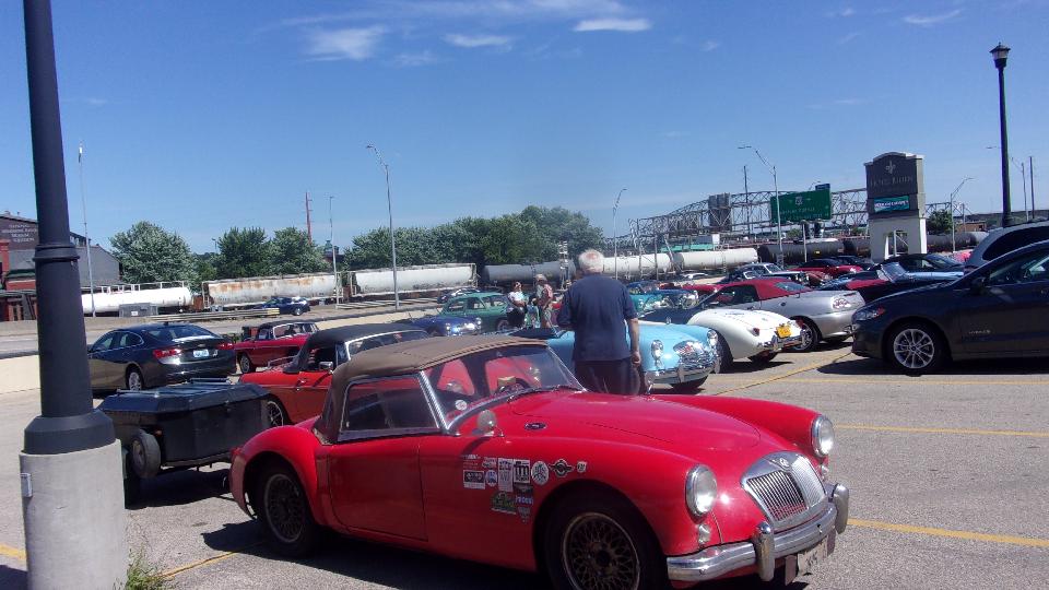 We strolled across the Mississippi River to Dubuque, Iowa today, found the host hotel, and picked up our registration packet for NAMGAR GT-44. Then wandered around the car park a bit to check out the early arrivals.