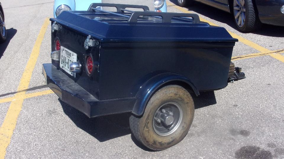 The small box trailer on right is new to me. I suppose the heavy-looking rear bumper is fiberglass, which may or may not be substantial. The bumper being that low might help if you back into a wall, but it isn't going to match up to the height of most vehicle bumpers. I will try to find the owner later for more information.
