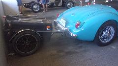 The red MGA trailer we have seen before. The Haul Master in the middle looked pretty good. I spent some time looking for this one on the net, found it to have 600 pound load capacity and locking side-lift cover with gas struts. Looks good, so I may have another look at it later.