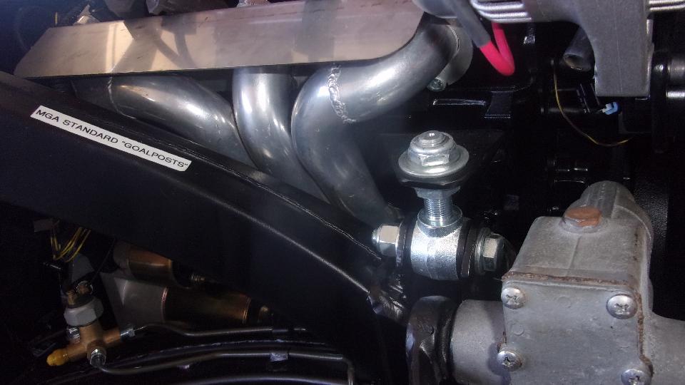 The in-process MGA V6 conversion chassis distracted me for a while. I was particularly interested in how they handle engine mounts and exhaust manifolds without hacking up the frame. There is a neat 3-gear transfer box on the front of the firewall to relocate the steering shaft using three U-joints. Seems like everyone does this differently, and so far never in commercial kit form.