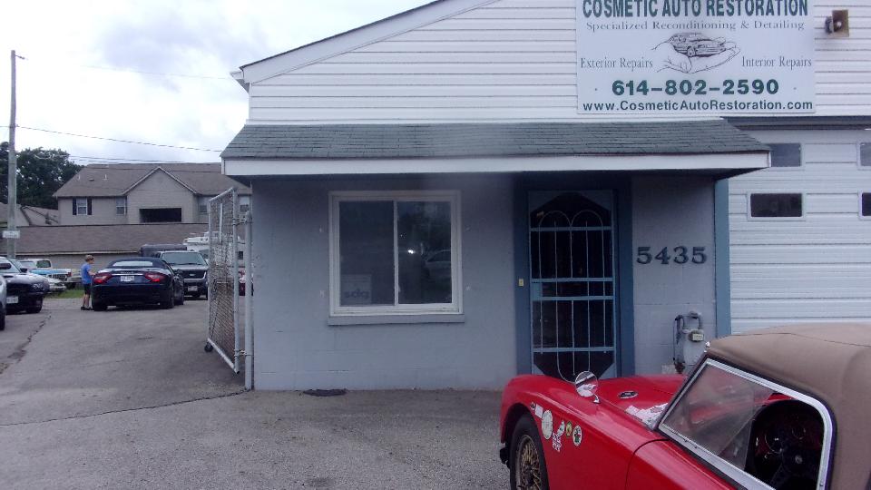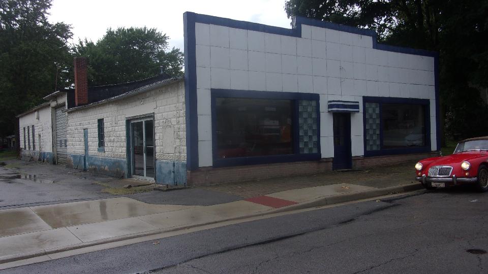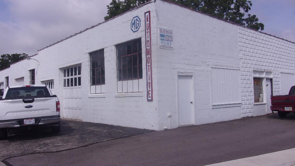 Then we had fun chasing down loose ends of history, beginning with Upstairs/Downstairs British Automotive in Mansfield, Ohio. You have to back up about 20 years for this, as the green and white building has been unoccupied for a long time (although I am assured there was once some very nice decoration inside). Then the shop moved to a location more main street for a while (garage door at the left end of the center picture), now with a new tenant. But more recently moved again to a rural setting several miles north with more space.