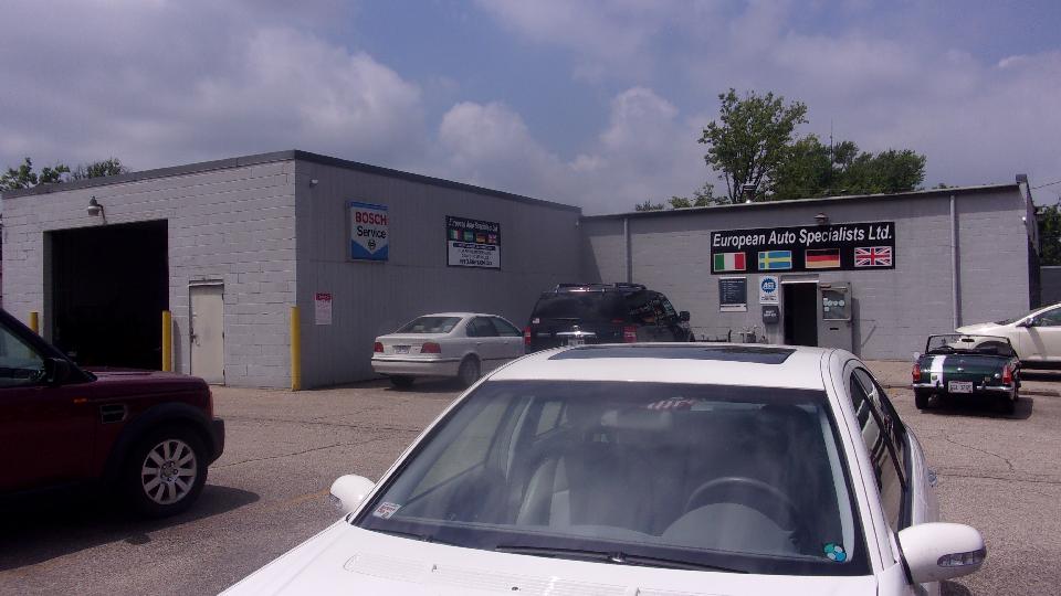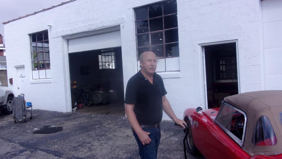 Then we were looking for Prestige Imports in Cincinnati, OH, but ran into European Auto Specialists, Ltd at the noted location. The shop changed hands and changed name in 2001, but they do still service vintage British cars, and there is still one tech there who was employed by Prestige. The cheery fellow is the service manager John Scovanner, son of the owner Lee Scovanner. Lots of vintage cars around, some of them British, but nothing interesting inside the shop today.