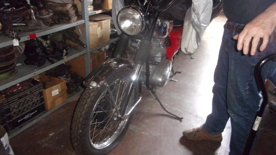 Plenty of new parts available. The bug-eye Sprite with a couple extra front ends appears to be a home project, low on the priorities list. Just to be different, catch a picture of the BSA on the way out.