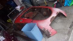 He was lucky enough to find the chassis number on the frame, which looks like it matches the rest of the car. Unfortunately his very legal title has a car number that does not follow factory format, but looks like it may have been assigned to the prior owner by the California DMV. Will try to check in on this one again later as it makes more progress.