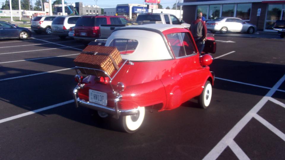Nice way to start a new day with a small friend in the car park. Don't know this Isetta's story, as we didn't get to talk to the owner, but someone said there was a car show in the area today.
