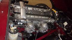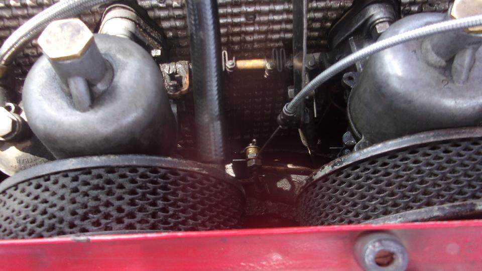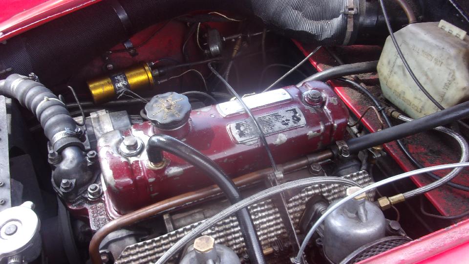 This is a rather rare 1935-36 Riley Sprite, I think just 51 built. It is not dual overhead cams. It has dual cams low in the block with very long pushrods.