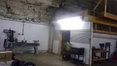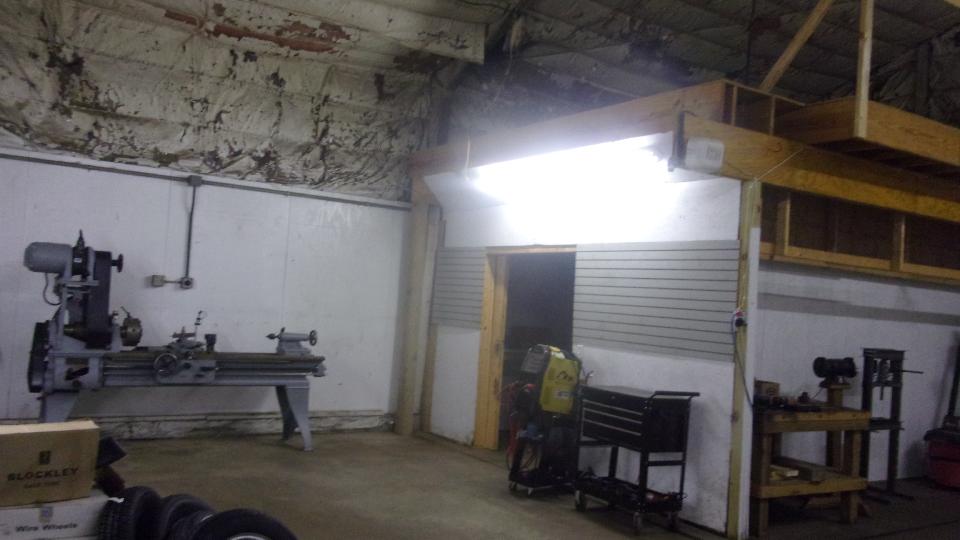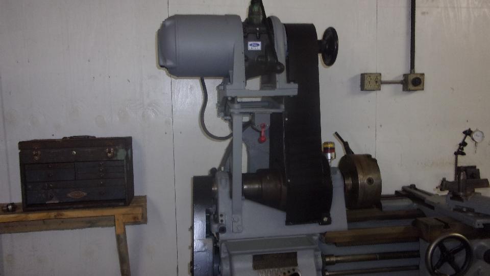 The first large piece of equipment into the shop was a vintage lathe. Like old cars, vintage machine tools properly maintained can continue to work forever. This particular model was originally belt driven from an overhead power shaft. At some point there was an option for bolt-on electric motor drive. This one includes a Ford Model A gearbox for speed reducer. Just to the right is the engine assembly room. Beyond that more work space.