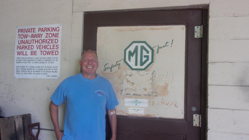 Breakfast in Kettering, OH, scheduled for a fairly busy day. Rolling by 10, first shop stop was M G Automotive in Kettering, OH, Parts and service for MG, Triumph, Austin Healey and related autos. Greeted at the curb by Steve Miller.