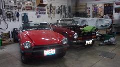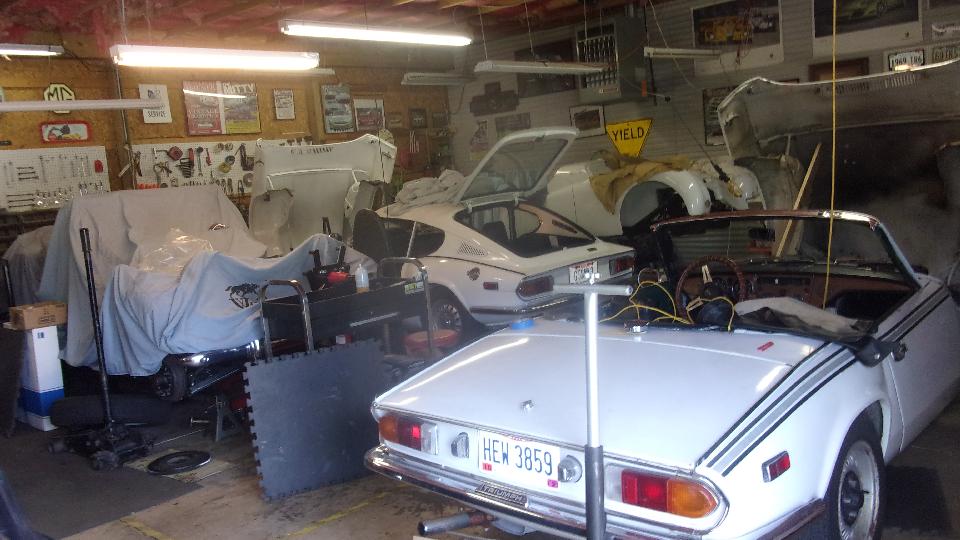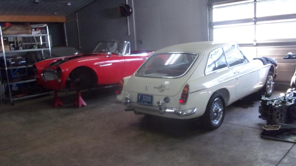 They work mostly on Triumph, but occasionally other vintage British cars, like the MGB in the shop today. Full restoration services are available.