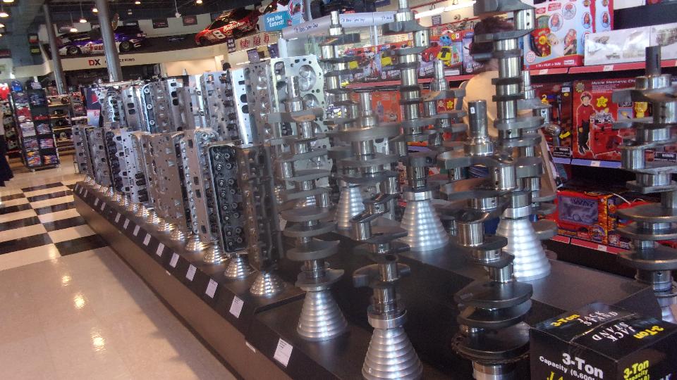 Last stop for the day would be Summit Racing in Tallmadge, OH. There are several of these stores across the nation, favorite haunt of the lead-footed racer types. I wanted to ask if they had tune-up parts for my Mallory Dual Points distributor (now spare), but lines were too ling at the counters, so skip it this time.