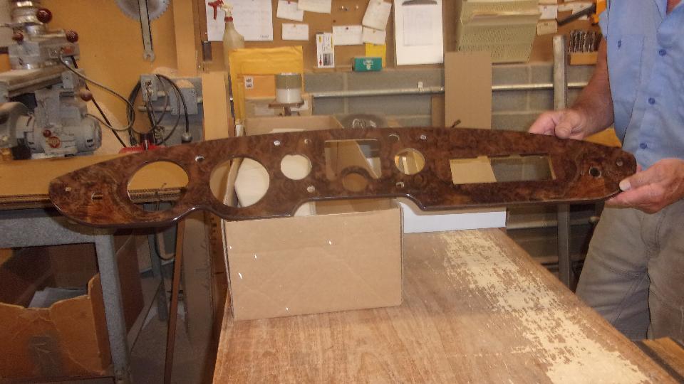 Good to see seamless, knot free wood on hand, more like fine furniture. There is an exception to the T-type parts, as to do make a wood dash panel for MGA, special ordered by Moss Motors. Good to see all the proper counterbores in the back side to thin the panel in all the right places for instrument lamps and switches. These will be delivered with all the required brackets for installation in the MGA.