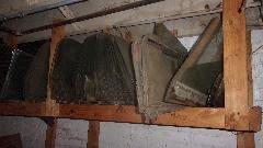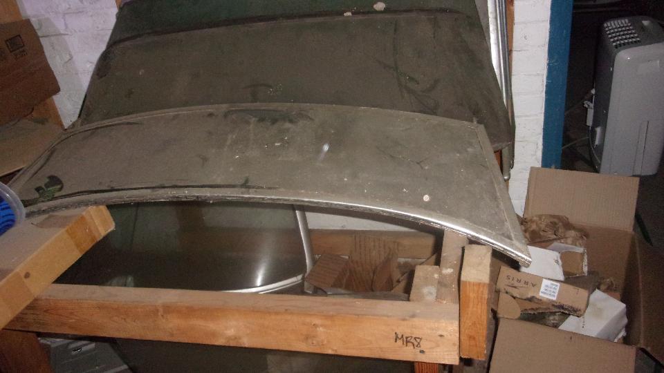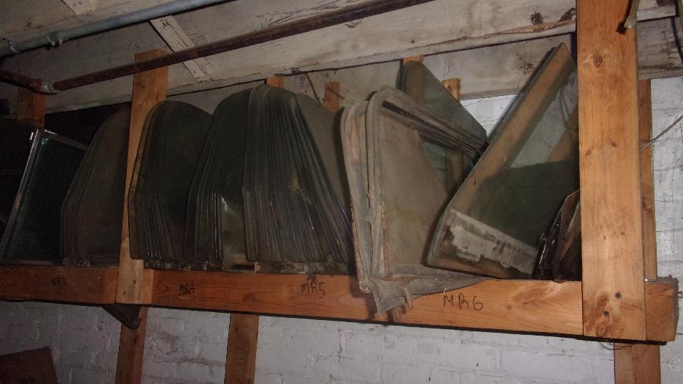 Looking for Omni Specialties in Cleveland, OH, we found instead Access One Alarm and Audio. Word is that Omni had moved to Lorain County about 2011, phone number disconnected, and no trace of it on the net since then, so scratch this one off the list. Not a complete bust though, as the current tenant had some interesting bits left over in the basement. We found an MGA windscreen and side curtains, and a few more similar parts for other vintage British cars. Cracked glass and scratched chrome, but the side curtains might be rebuildable.