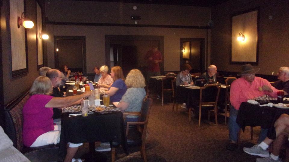 We had been pushing it pretty hard today to finish our appointments in northeast Ohio, and then we had a rather tiring 3-1/2 hour drive southwest to make a dinner meeting with MG Car Club Southwestern Ohio Centre in Miamisburg, OH. We missed this one a few times, including missing by a couple days last month. It was also one of the few remaining clubs we had not been able to catch in the past five years, so we kept on keeping on to make the appointment when it was available. The MGA Coupe parked out front was so new that the restoration was not finished in time for NAMGAR GT-44 in Dubuque, Iowa just two weeks earlier. Inside we found 30 jolly souls all happy to see us (finally) show up, and a good time was had by all.