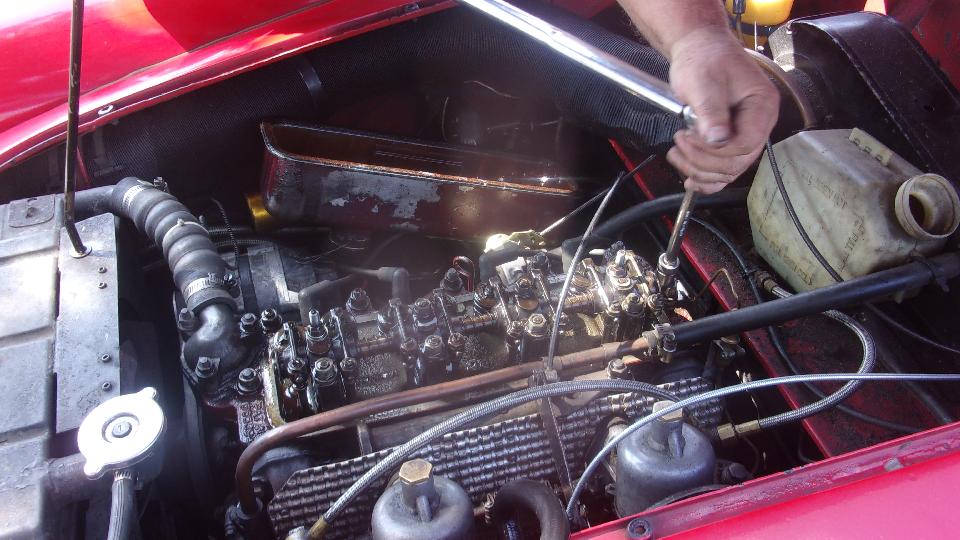 After warm up run we re-torqued the cylinder head (long overdue since installing new pistons), and reset valve clearance, now trying 0.013" rather than 0.015" to see if it might reduce valve noise. Gave it new rubber grommets while we were at it (poor quality rubber short life).