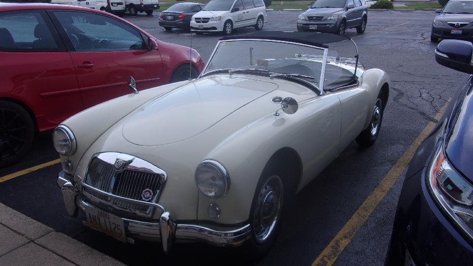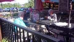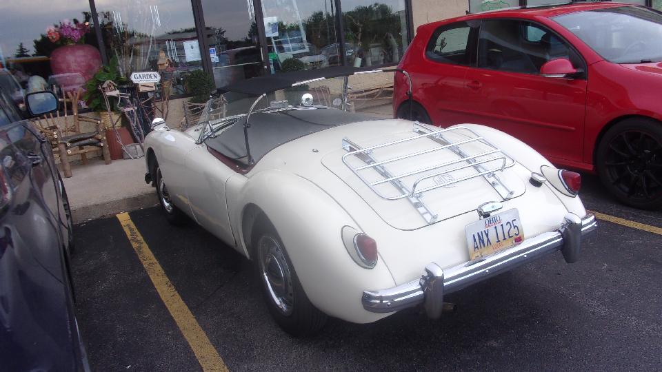 Then off for 6:30-pm dinner and club meeting with Lansing Area MG Association (a NAMGBR affiliate) at Buddies Pub & Grill in East Lansing, MI. One MGB and two couples there when we arrived, another couple to come later. Nice dinner on the patio, and a club meeting so informal that we weren't sure when it began, but did know when it ended (just as everyone would be leaving). In between lots of chat about recent club events and some personal travels, and general chat more akin to a Natter 'n' Noggin, but a good time was had by all.