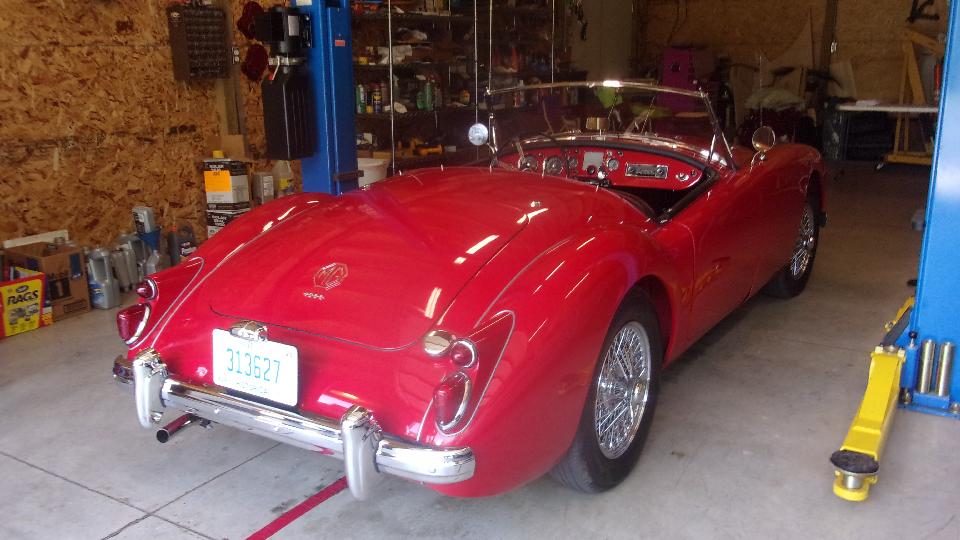 We were admiring the finishing touches on this restoration. The side curtains, original MGA 1600 type, were restored by Todd Clarke of Clarke Spares and Restorations a few years ago. That surprised me, because I thought Todd was only selling the parts and no longer doing the restoration work.