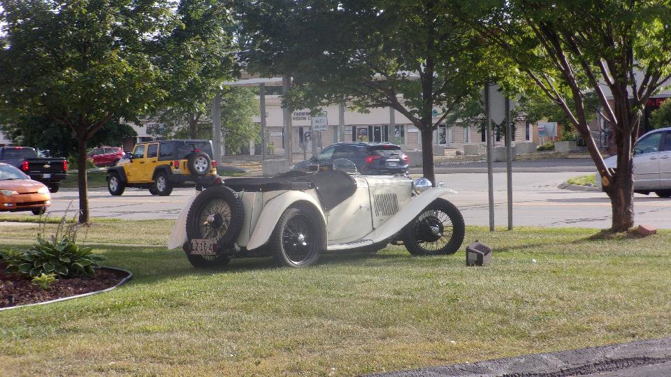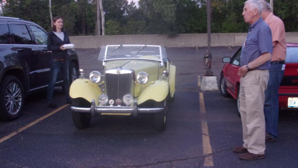 After tough night we slept in a bit, had a short late morning chat, ran off to brunch, and didn't get anything notable accomplished. But we did lay plans to return next week end to see if we could help. Then pointed it south and east and sough some more. Had an evening appointment for a club meeting with Lake Erie British Car Club in Maumee, OH. It said 7-pm meeting, but it looked like we were late, as most everyone had half eaten dinner by the time we arrived. Nothing new, just that no one said to come early for dinner. Nice club meeting with about 20 people stating promptly at 7, concluded by 8:30.