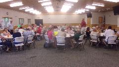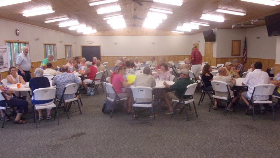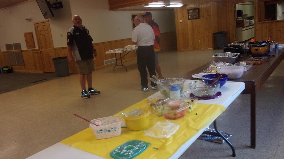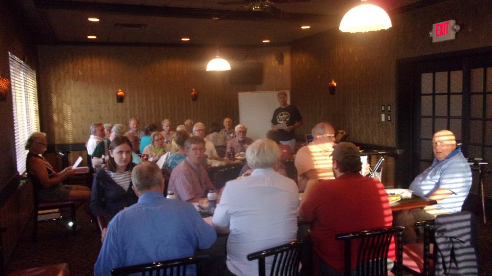 About 50 people inside did a pretty good job of cleaning up the potluck buffet before the formal business meeting. Typical stuff about old business, new business, reports, new members and guests. I got to do 10 minutes about the MGAguru web site and our road trip, number of clubs visited, cars worked on, and the 1100 vendors on our Shops list. In general a good time was had by all.