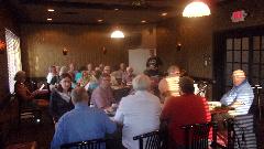 Club meeting tonight with Central Ohio MG Owners at the Old Dog Ale House And Brewery in Delaware, OH. No dedicated parking lot, no space to park on the street. Followed and MGB tourer once around the block but lost him making a left turn at a traffic light. Finally found a space in some small off street lot a block away and walked. Nice enough tavern style pub with space in the rear for at least 30 people, well filled. Food good, service okay, but noisy. When it was time for the business meeting and someone rang the bell, I was surprised how much the noise dissipated, apparently it was mostly from our own folks. So the meeting came off okay, well founded club, active enough, and I got to do a few minutes about our ventures.