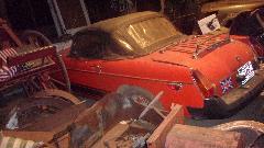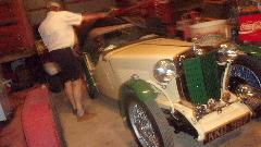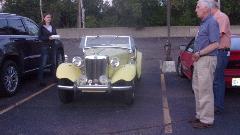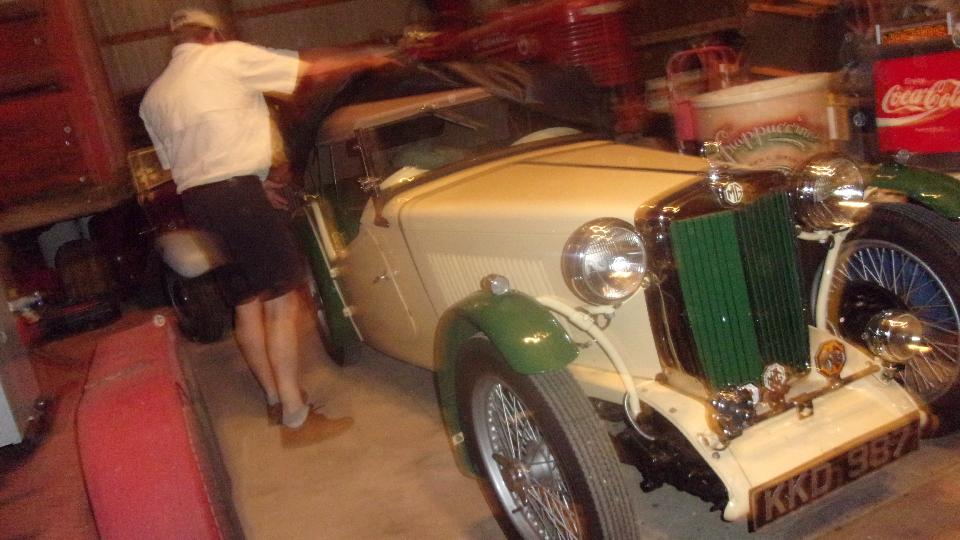 After the meeting we toddled on 33 miles south to visit Bill Hirsch in rural Caledonia, MI. Kind of dark for pictures, but we found a '78 MGB belonging to his son, an MG SA partially disassembled and begging for restoration, a nice MG TC with a slipping clutch, an MGTD missing a bumper and needing a tune up, a Triumph motorcycle belonging to his son (permanently under a friendly contractual obligation), and a popcorn wagon without a cause. There was also a vintage horse buggy, but couldn't get a picture of that in the dark. Bill also has an MGA that we didn't see tonight, but we will likely get a better look at all of the toys in the morning. Up to chat past midnigh,followed bya afew hours of WiFi work, just needing to get some sleep.