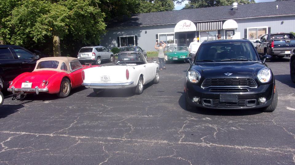 Then heading off to a mid day British Car Uniion rally presented by Austin-Healey Club of America, Midwest Region, beginning in North Aurora, IL. Calling for 11:30 am drivers meeting, first there, a few more cars trickled in, just four cars for the rally, and we finally got off at 12:30. Typical gimmick rally, follow the designated route and answer some questions along the way. A few questions would require a short walk or a brief off-road excursion. A couple apparently had multuple suitable answers, only one of which would be considered to be correct (your guess which one). Also one traditional error in the route instructions to cause a bit of consternation. All in all an amusing cruise in the country on a nice day.