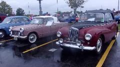 Among the Morris Minor collection I found an Allstate Tag-along one-wheel trailer, something to add to my Trailers tech section. I picked up a pair of third place trophies from the rally day before. Near end of show I got hooked up with Richard Witzel from Chicago, IL who has a very nice MGA Twin Cam that was restored by Auto Vintagery. Finding it running very rich, I leaned out the front carburetor nicely, but couldn't reach the rear one, so we will re-visit this one later.