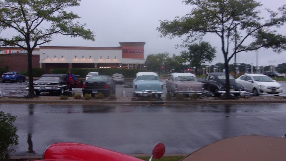 Rained pretty much all night, still drizzly this morning. Found four cars from the Chevy club on their way to Cantigny Park in Winfield, IL for a car show.