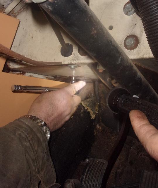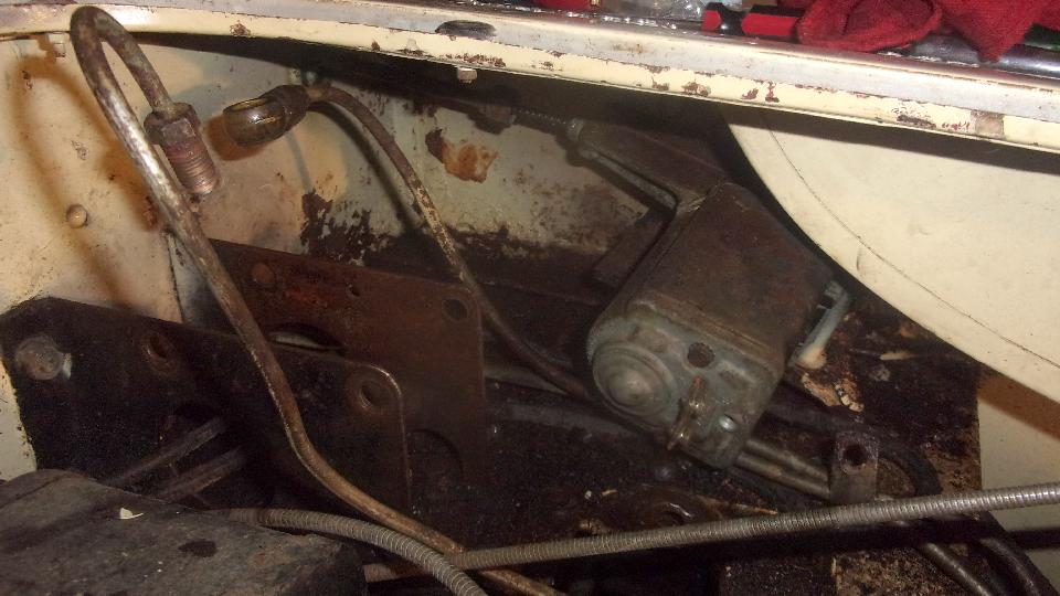 Then we could get back to the task we wanted to start yesterday, installing the new master cylinder. But first boost the clutch and brake pedals into place to install the new pivot bolt, pivot sleeves, shaft spacer, pedal return springs, and install a new rubber pedal excluder (compliments of the magic trailer). By then it was dinner time, call it quits for the day, and we will be back in the morning.