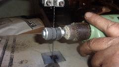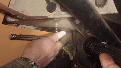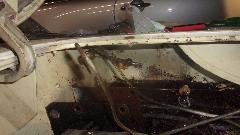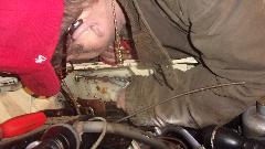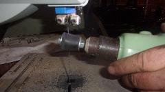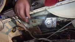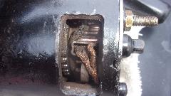 In the end we made two new grommets to install along with one old one that was still serviceable, got the new wiper motor attached to the mounting bracket, shoved the cable up the pipe, got the motor lashed into place and pipe coupling nut connected.