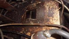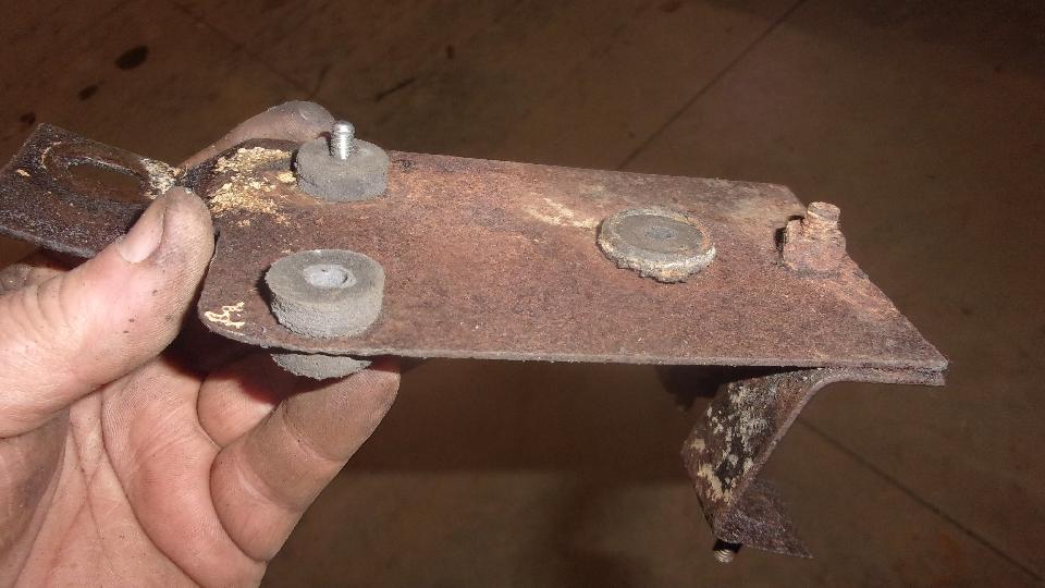 transfer the mounting bracket from old motor to motor, which is where we ran into the next problem with rotten rubber grommets. After digging a new wiper motor mounting kit out of the magic trailer, we found the rubber grommets were missing. I recon I had used the rubber grommets for my wiper motor replacement back in April, and we haven't placed the next parts order yet. Grrrr.