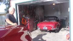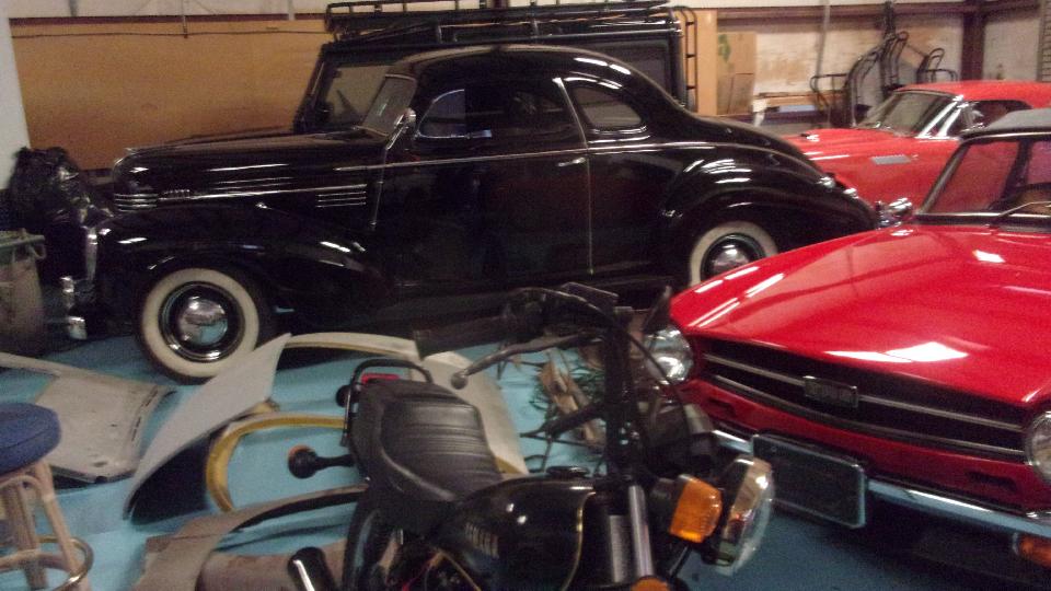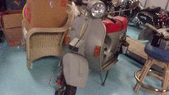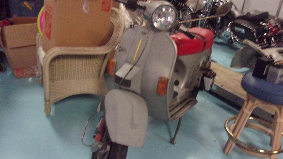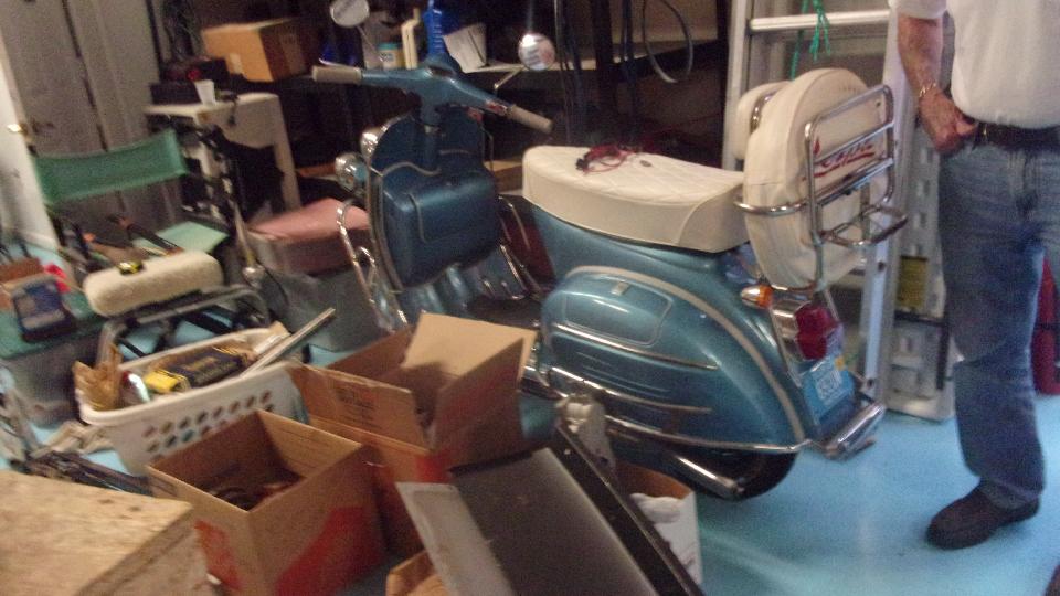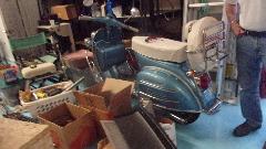 Then we had a chance to scout around his shop to check out more of his toys. I lost count after bout 15 cars and a few motorcyces and scooters. The blue one is a Vespa, while the white one is an Italian copy called a Stella.