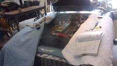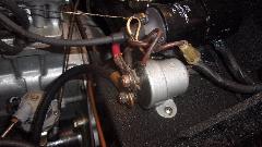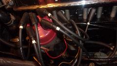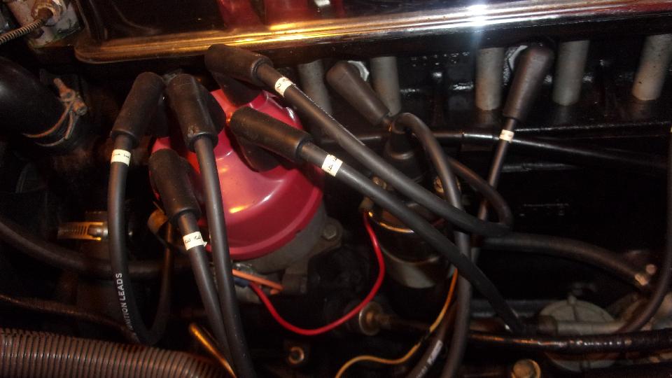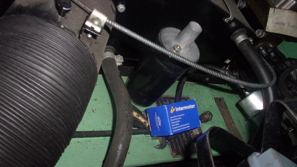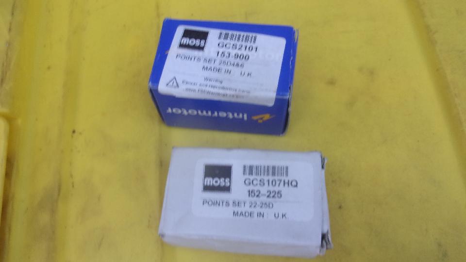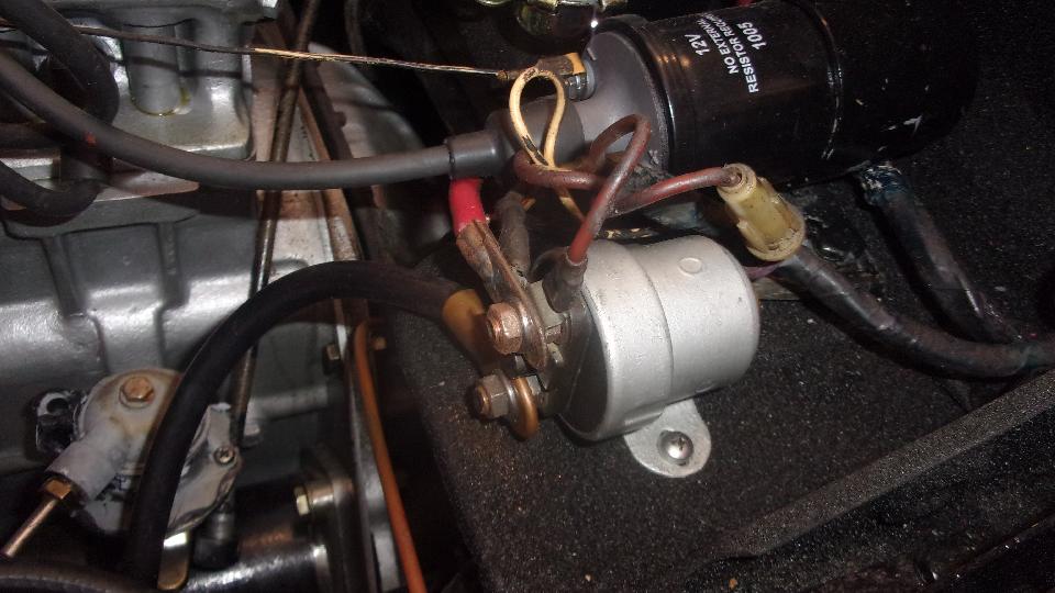 Back to the MGA Coupe. Ths was reported to eat ignition points very quickly with the contacts closing up after just a few minutes around the local streets. A few cycles resetting the points and more shrinkage ran out of adjustment range. Experience says this is likely caused by incorrect ignition coil with low resistance on the primary winding causing excessive current draw, so we measured coil resistance. Sure enough, it was about 1-ohm where it should be around 3.2 ohms, so would have been pulling 12 amps when it should be 4-amps. A few minutes groveling around in the magic trailer produced two sets of points and a good coil to be installed later.