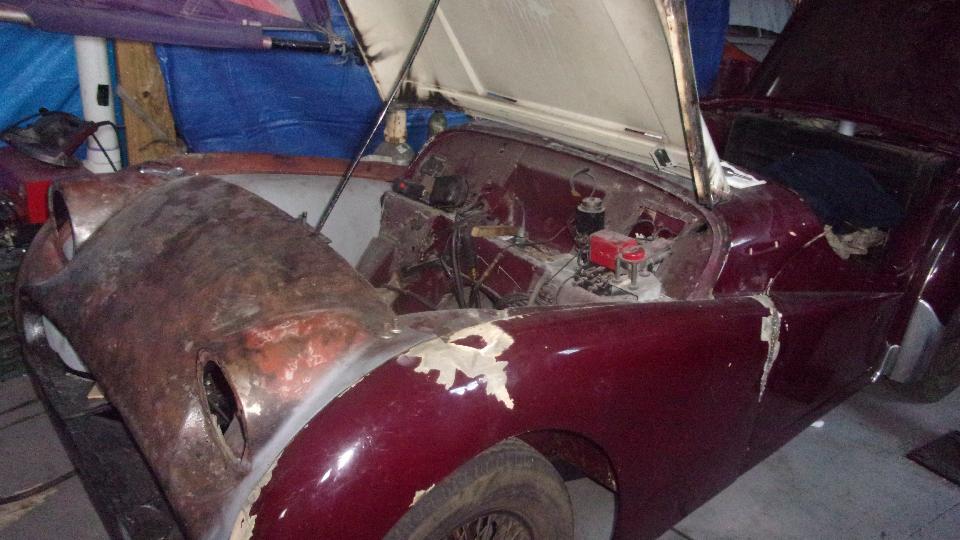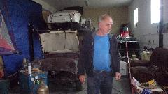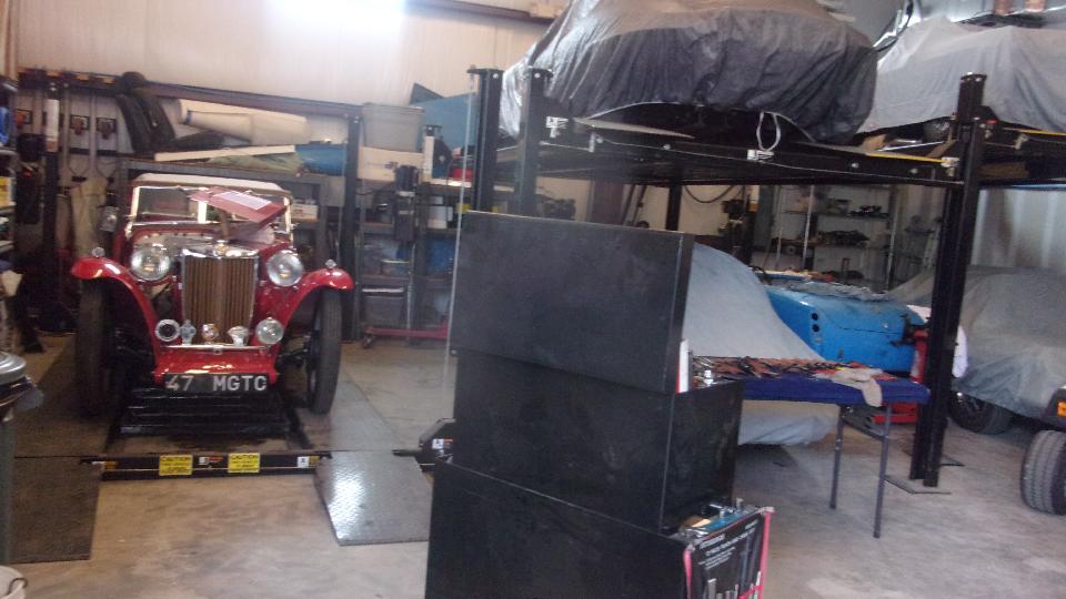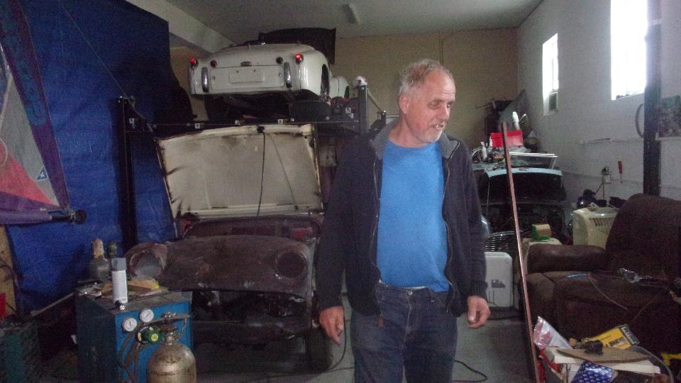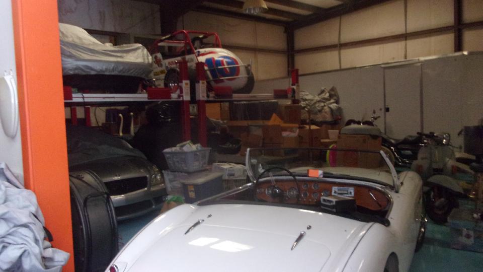 Stepping over to the right side we were in the workshop space where we found out Willem is really a TR3 guy. The white one up top is a nice driver car. The scruffy looking one below is being resurrected after a very bad head on collision. The power unit goes with that car, and yes there is another TR3 back in the corner. Could you get all that stuff in your basement? I think his wife parks her car outside? Hummm.