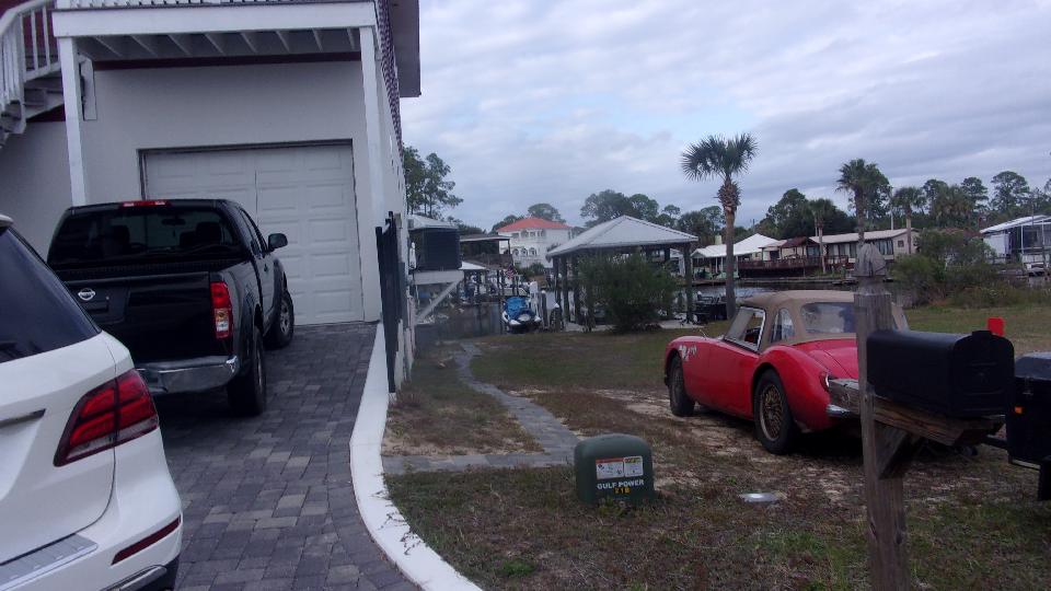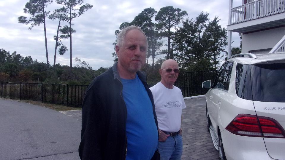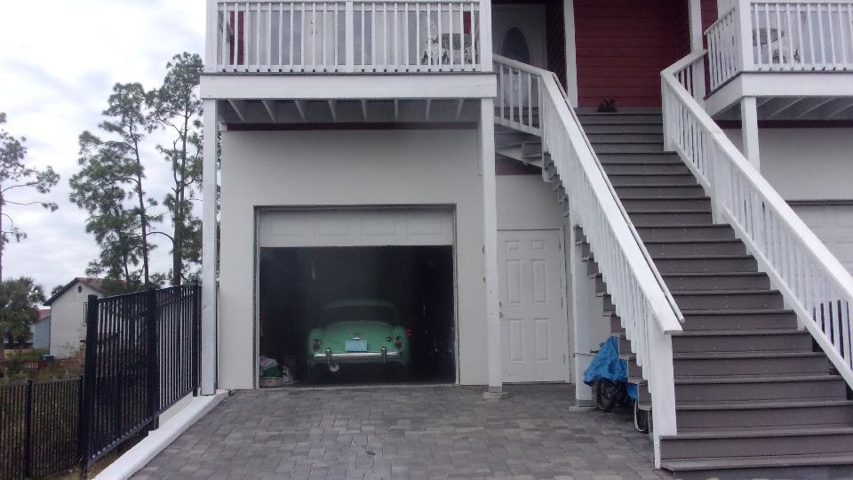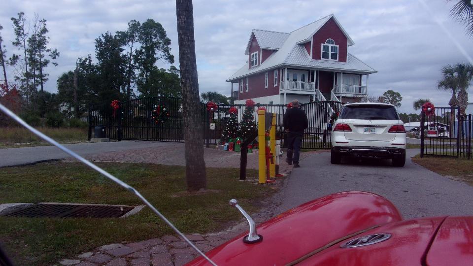 After a lunch break we were off to visit Willem Van Dijk in Panama City Beach, FL. I didn't realize while we were waiting at the gate that the tall house right inside to the left was Willem's place (backed up to a marina). We parked on the right while Charlie Schott parked on the left. The entire lower level of this place is a large garage space with high ceiling and two garage doors either side of the entry stairway.