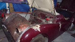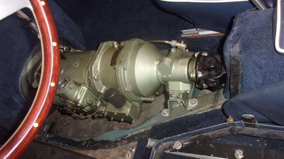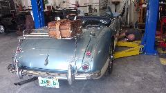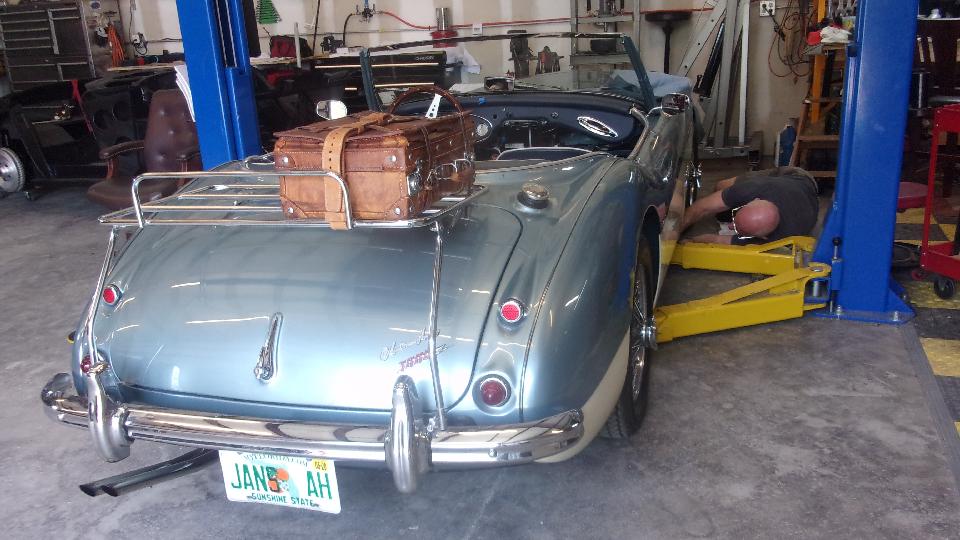 We were here to check out Charlie Schott's (running) Austin Healey 3000. In February 2016 we were sorting out wiring to get the overdrive to work, and in February 2017 fixing some ignition problems. Now the overdrive was not working again. Report was that the accumulator had been replaced, because it was a regularly reported internal leakage problem, but that didn't fix it. Figuring we would have to get underneath to check it out, we moved another AH project car off the hoist to get Charlie's car elevated. Turns out the OD solenoid is on top on this one, and the tunnel was already loose to be easily removed, so maybe the effort getting it on the hoist was for naught.