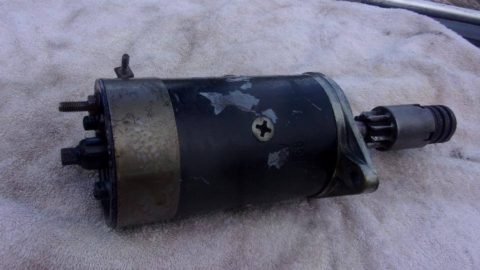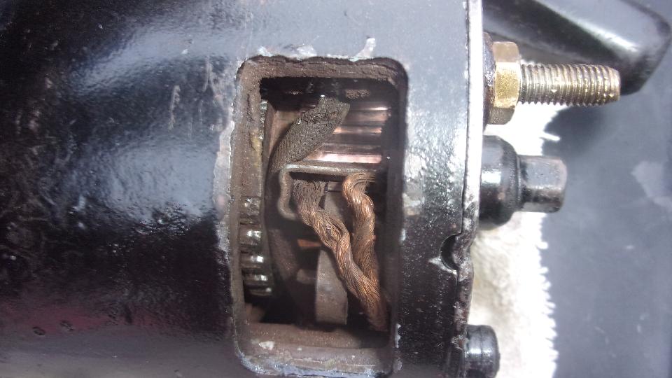 In the meantime, Bill Wright and his son dropped in with the failed starter motor that was extracted from the Spitfire (remember this morning?). We took a few minutes to open it up for internal inspection, finding badly worn brushes and matching worn down commutator. This one needs a rebuild at an electric motor shop (unless it turns out to be cheaper to buy a rebuilt one). Put it back together and send them on their way, and we were off for the night.
