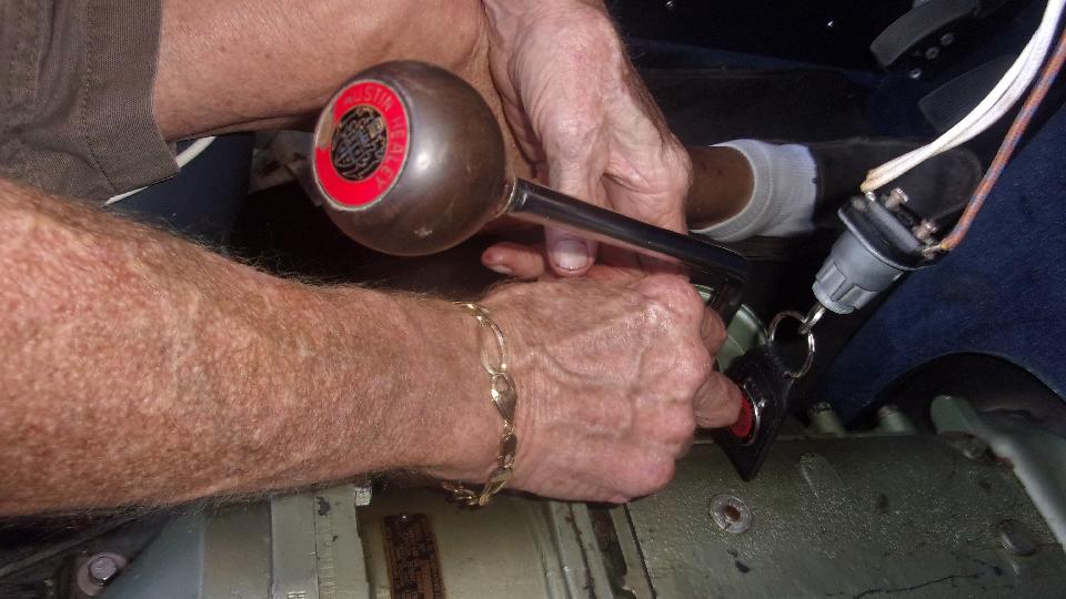 That was time for lunch break and a head scratcher session when we thought the Brooklands manual may have another error in the set up instructions. After lunch we ran over to Charlie's house to get the Driver's Handbook, hoping that might give a little hint on the operational function, but it didn't help. When the shift lever hung up once we had that out to install a new split bronze bushing on the bottom end.