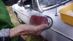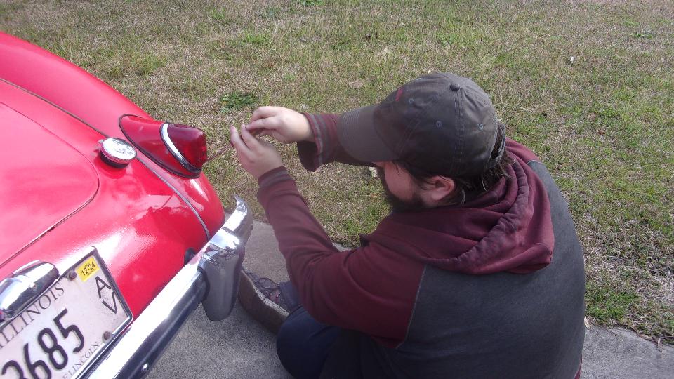 Uh-oh. Caught navigator working on the car again. This time he was fixing a failed ground connection in a tail light.