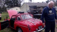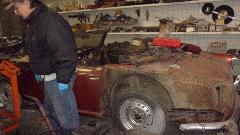 There was a GT6+, and I'm sure he has plans to get it restored soon, as he is very persistent at such things (definitely not a foot dragger). There was not a derelict car or parts car anywhere around. But ther was a rather large stash of spare engines and gearboxes (of which he may have lost count), and other spare parts.