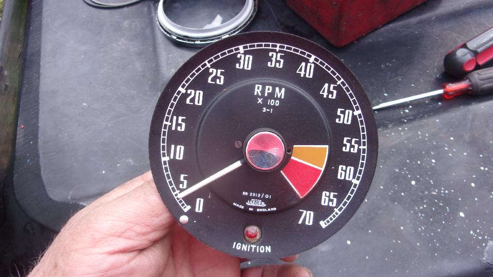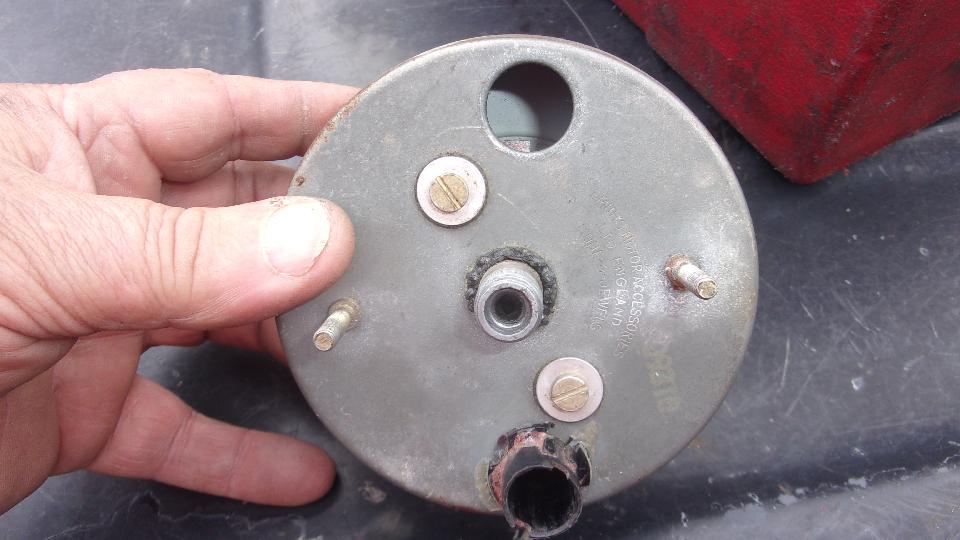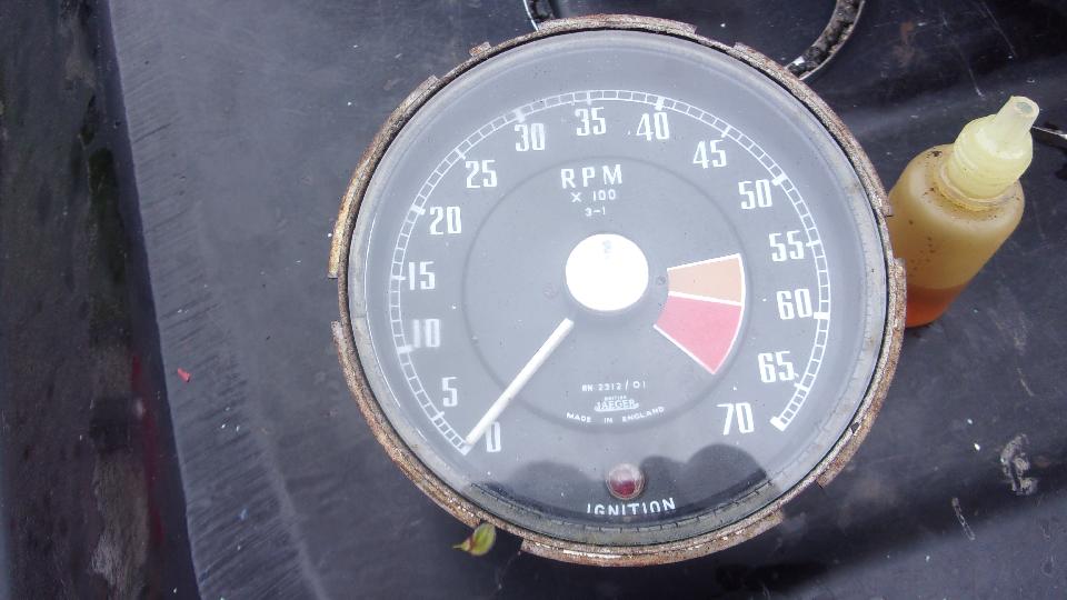 A drop at a time of light machine oil here and there in every joint that moves, spinning the input shaft with every move. Then reassemble the works with two screws in back, light guard ring in front, clean the glass, and install trim ring and thin O-ring seal for the dash panel.