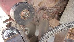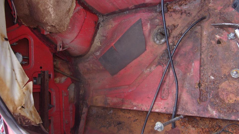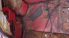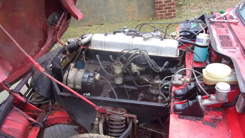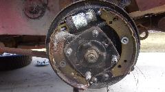 The brake master cylinder had fairly clean fluid in it, and pedal pressure implied that the brakes might actually work. The clutch master cylinder was filled with dry corrosion grit, so put a clutch master and slave cylinders (and slave hose) on the shopping list. We knew the rear brakes were seized (and clutch not working), so put it in reverse and hit the starter to see if the brakes could break loose. There was a bit of rear suspension wind up, but not budging the frozen brakes. Tried it in 1st gear with the starter with similar results, still no go. Now the big job of removing the brake drums will have to wait for another time.