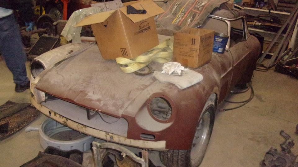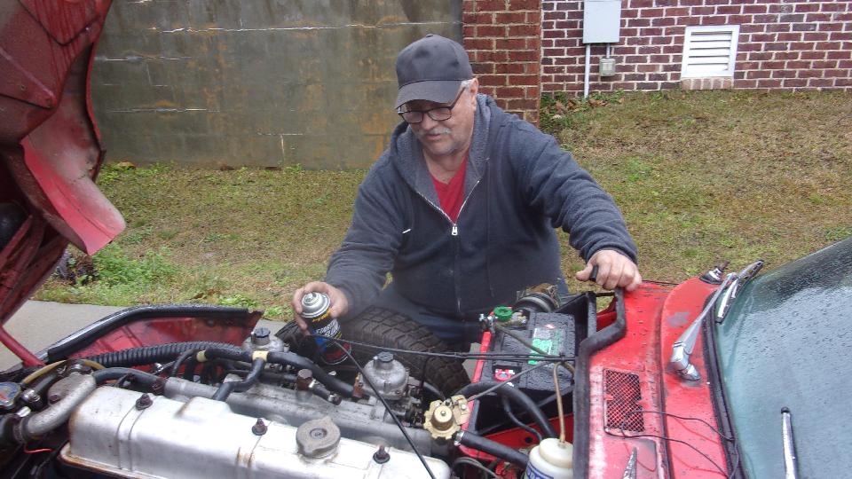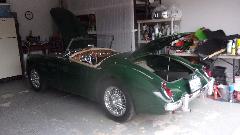 Sitting on WiFi later evening we had a walk-in, Mark Adams in Lexington, SC. Good story here. He has an MGA that his mother bought new when she was young (before he was born). She got married, then Mark was born After a while the MGA became "not a good family car", so it was parked for a long time. Then his mother died. His father was trying to sell it or pass it on to someone else. There were a lot of new parts purchased, and the car was partially disassembled, and more time passed.