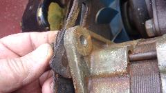 Then step on the starter gave a mild click at the starter motor, but no cranking. Don mentioned having installed two flat washers between the starter motor and engine back plate, not sure why, but he then R&R'd the starter motor to remove the flat washers. Through bolts holding the starter end plates are also mounting bolts, and he managed to let the starter fall