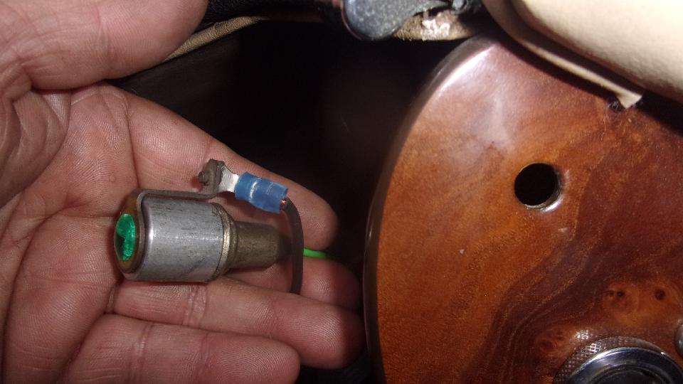 Easier to reinstall than it was to remove. Tuck it into the dash and reconnect the cable first. Fire up the engine to assure that the tach actually works and runs quietly. Then install the mounting bracket with ground wires and knurled thumb nuts, and reinstall the illumination lamp and ignition lamp. All in, run it again to verify mechanical and electrical function, then reinstall the steering wheel. The plastic cowl for turn signal switch can wait for later. Good time to knock off, clean up, put tools away, lock up the shop, and head off for a late lunch (or early dinner).