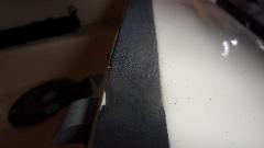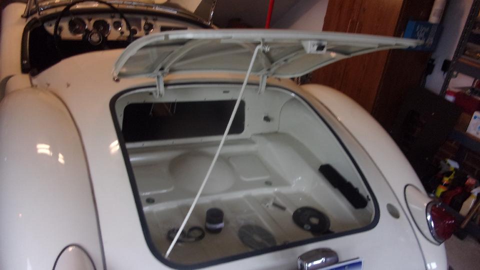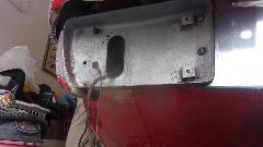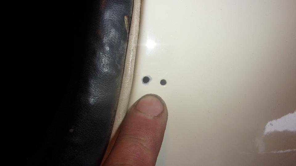 Had a look at the boot floor where the filler pipe grommet and cover plate screws go. Some trouble with screw threads, so I found so suitable new screws in the magic trailer. The rubber seal for boot lid was always too thick, being a late 1970's issue part. George has been systematically sanding down the thickness of the rubber seal to get the boot lid to sit flush with the body. Lots of elbow work, and I don't think he got there yet. George is still fussing over what to do about some odd holes in the rear body tonneau where there should be single holes for machine screw LTD studs for the tonneau cover.
