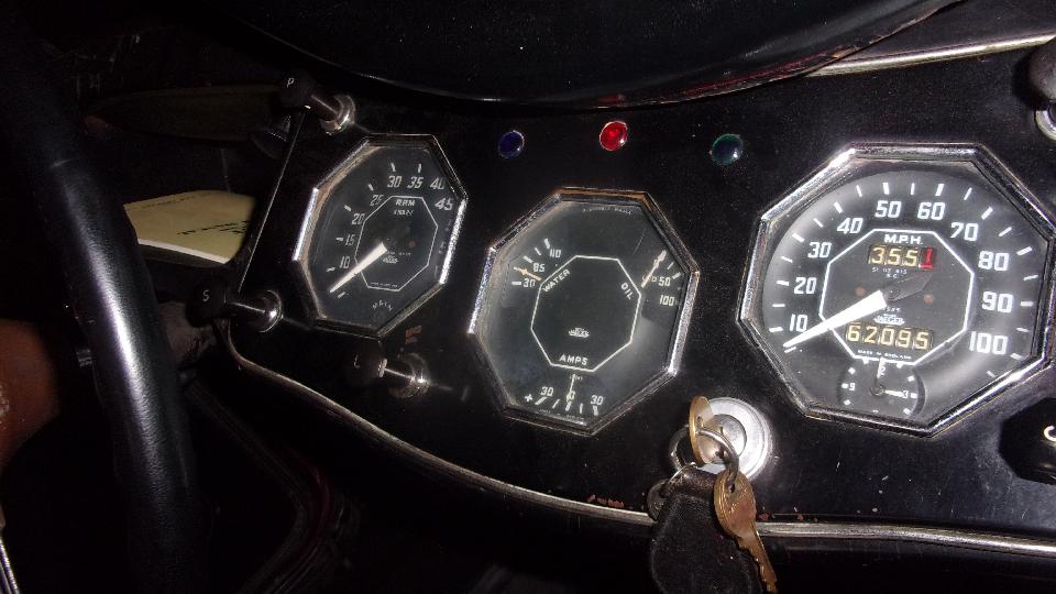 A few years ago someone decided it was time to get the car running again, so it went to a service shop where was repaired to be road worthy. Then it was decided to do a frame-on restoration, paid professional work finished in due time. There was a nice leather seat kit that came with the car along with a lot of other new parts. During restoration the gearbox rebuild was subject of a tech session for the local car club. Now it's back on the road to be enjoyed by Mark and his wife. We like to think of this as a one-owner car, in the family since new.