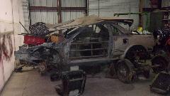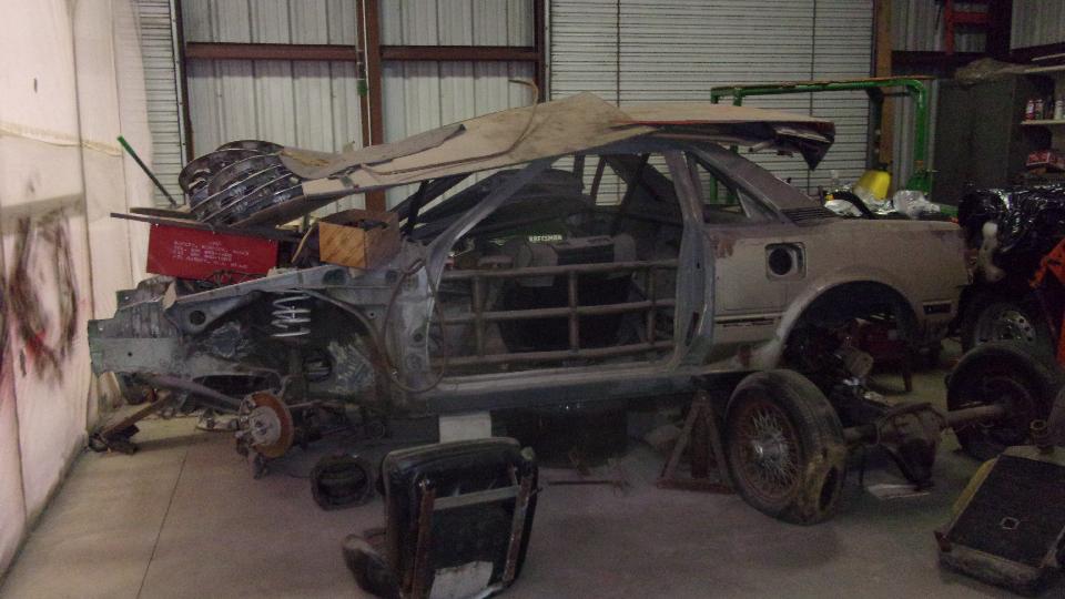 Not done yet. There was a TR6. I think this is the one he is building the engine for. Also a Toyota MR2, not as forlorn as it may appear, as the engine for it is sitting close at hand.