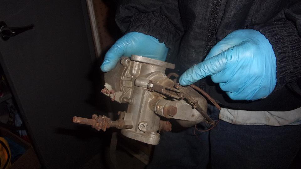Then I did a gravity feed of fuel directly to the carburetors using a hose and funnel, and it started and ran for a few minutes while fogging all mosquitoes in the neighborhood with exhaust smoke from burning off the preservation oil in the cylinders. Once most of the smoke cleared it was actually running fairly well. Third cheer.